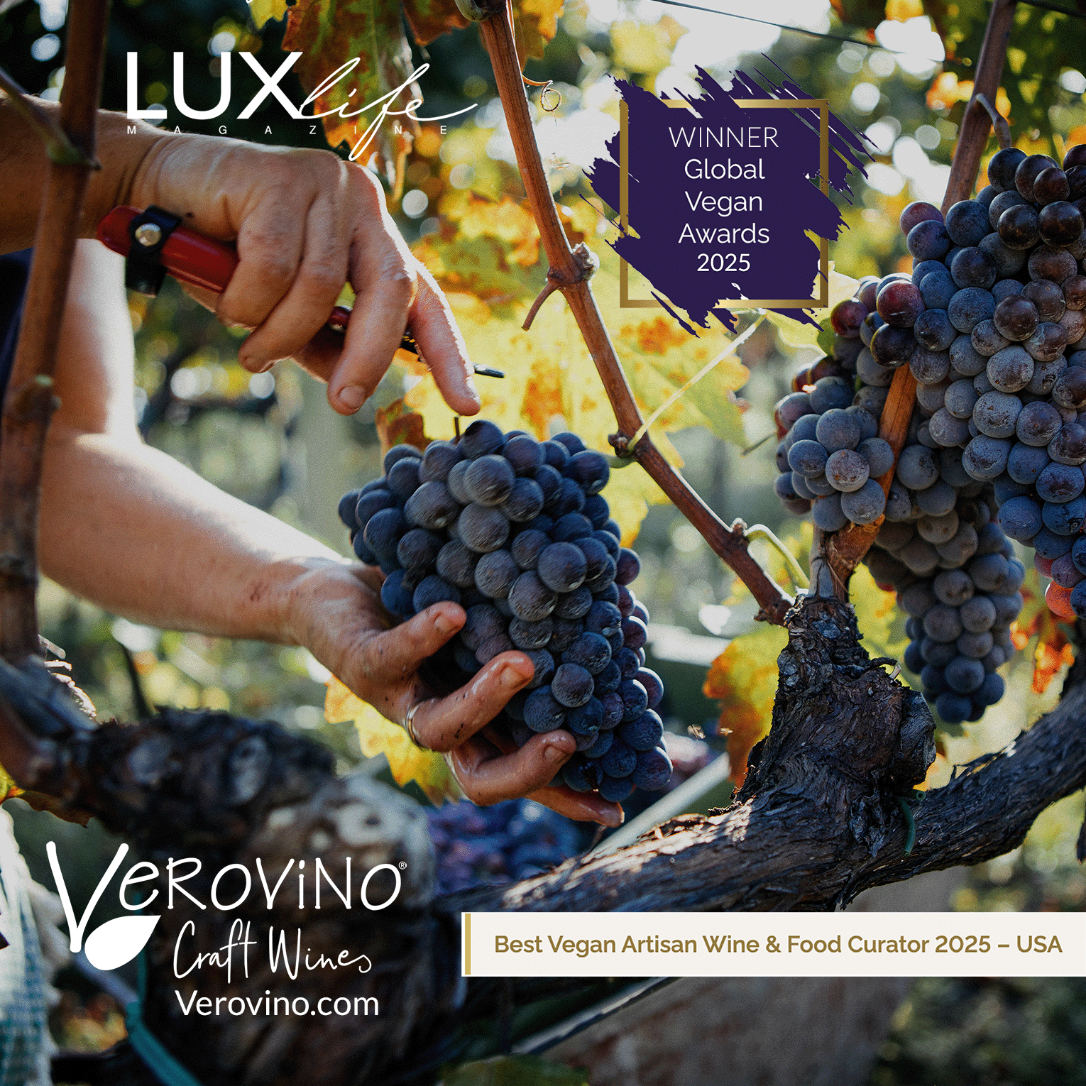 Vero is recognized as the best American curator of vegan artisan wines, olive oils and specialty foods as part of the Global Vegan Awards organized by LUXlife, who seeks out forward-thinking, sustainability-driven, award-winning enterprises in global luxury lifestyle.