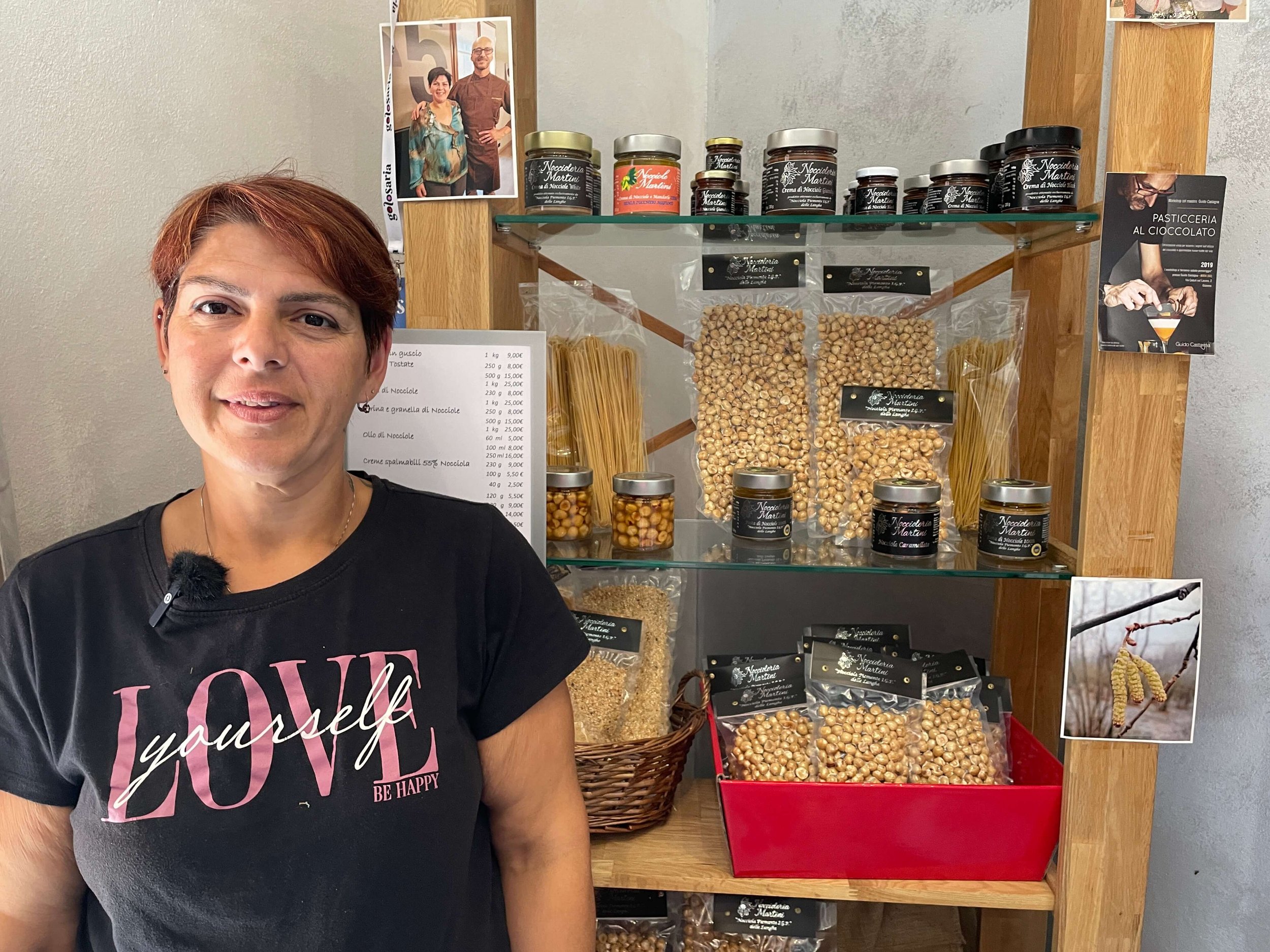 Silvia with some of her hazelnut products.
